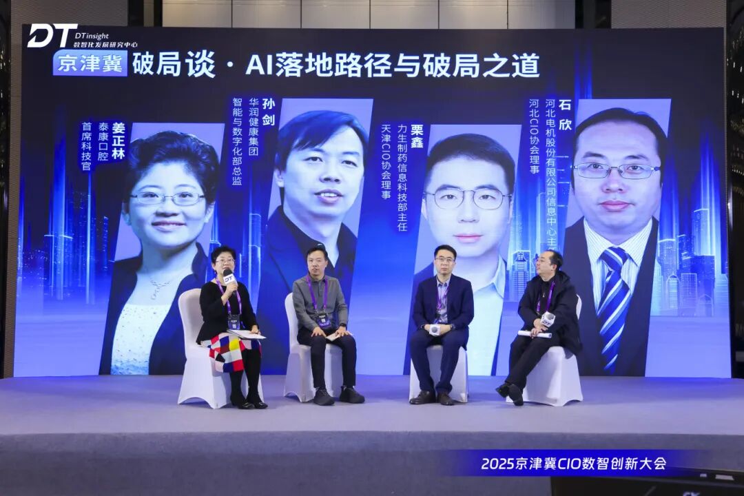 面对场景适配、数据支撑、算力、成本控制等AI落地挑战,京津冀区域协同发展,形成了“北京创新+天津研发+河北场景”的生态链闭环,引领着AI应用落地的未来方向。华润健康集团智能与数字化部总监孙剑、力生制药信息科技部主任栗鑫、河北电机股份有限公司信息中心主任石欣,与话题引领人泰康口腔首席科技官姜正林,围绕【AI落地路径与破局之道】的主题开启了AI专场【京津冀·破局谈】,共同探讨企业AI落地路径。